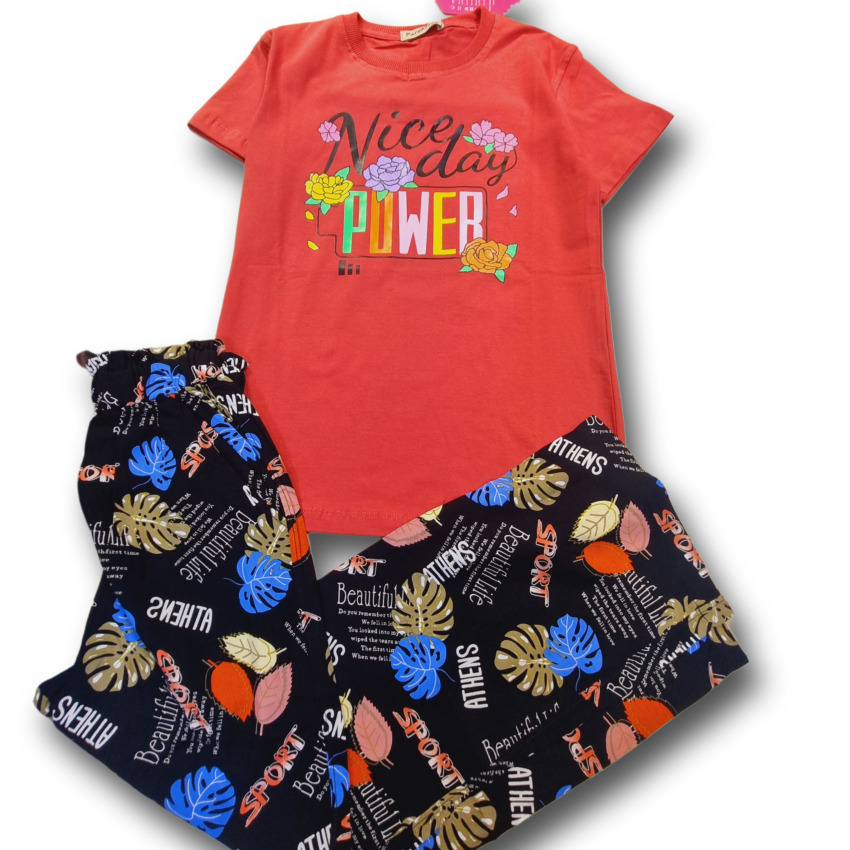 تیشرت و شلوار بیرونی ساحلی بگ بچهگانه طرح گل جنس نخ وپنبه