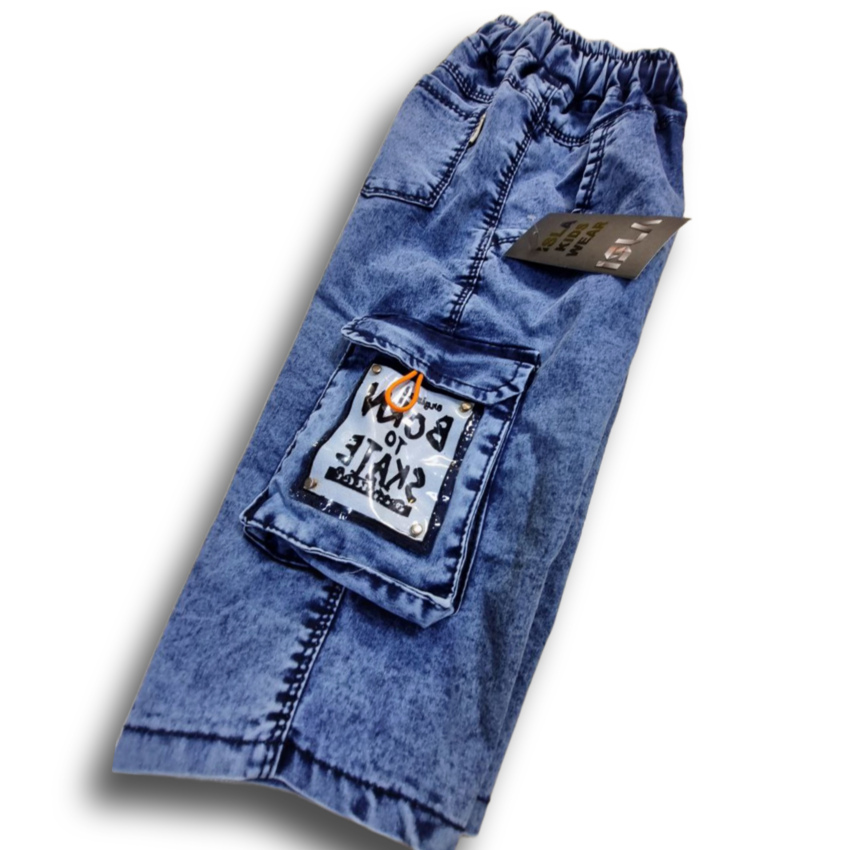 شلوارک جین پسرانه شش جیب با دو جیب سه بعدی جنس کاغذی کشی