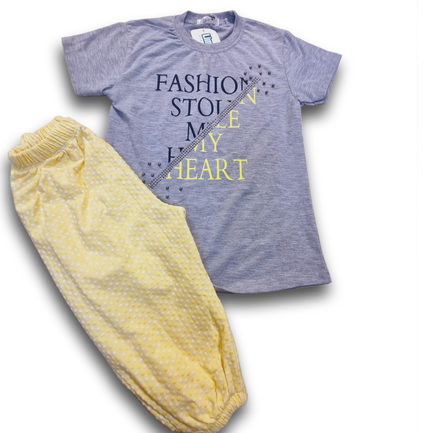 ست تیشرت و شلوارک دخترانه طرح fashion ست خونگی مناسب ۶ تا ۱۰ سال
