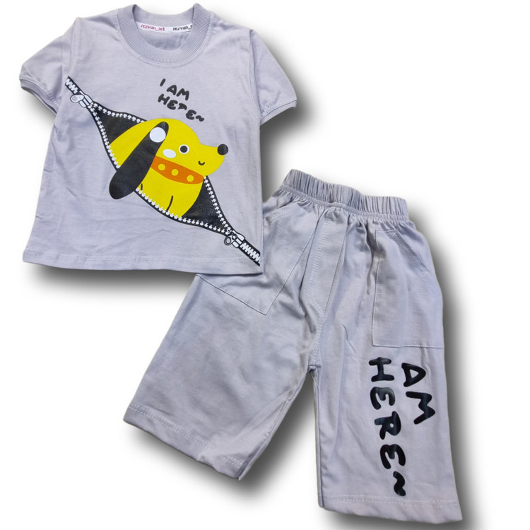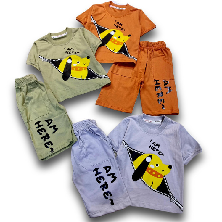 🌟 ست تیشرت و شلوارک پسرانه طرح سگ جذاب! 🌟