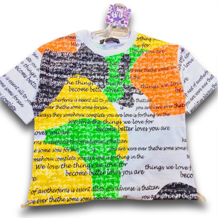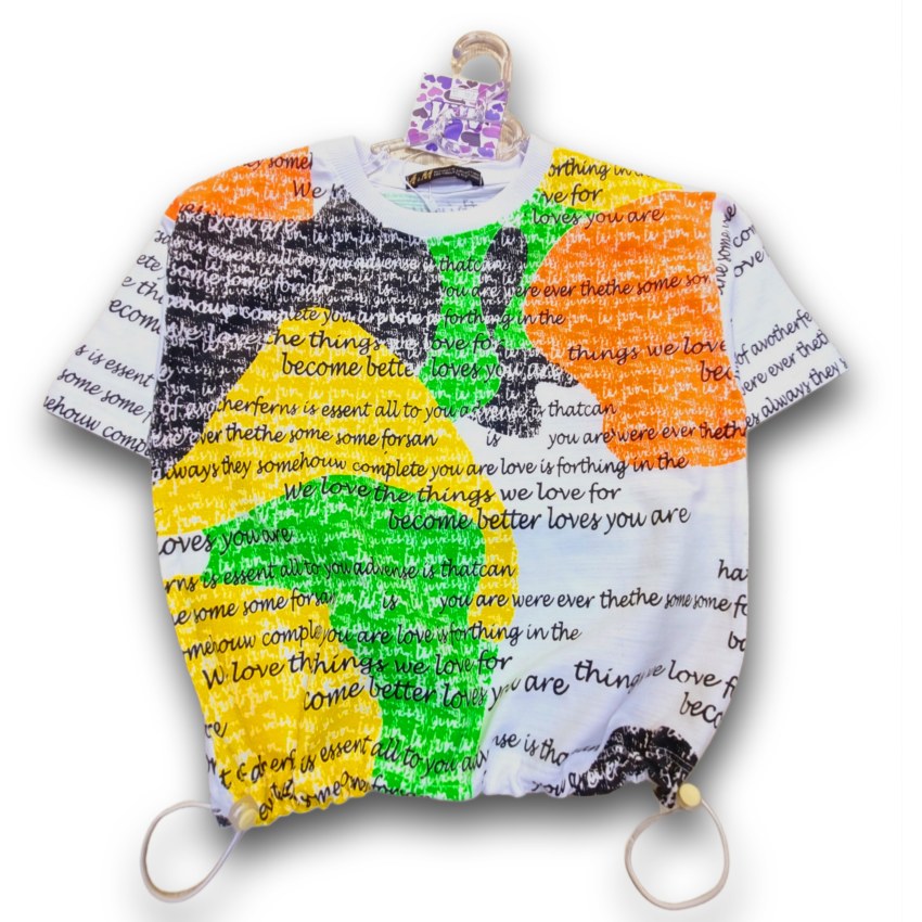 جزئیات : تیشرت رنگی رنگی باکسی که قسمت پاینش گت میشه