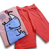 ست تیشرت وشورتک دخترانه طرح کرگدن وگنجشک جنس نخ و پنبه درجه یک مناسب 3 تا 9 سال