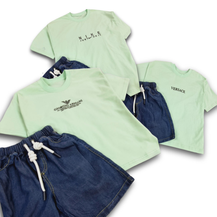 جنس تیشرت نخ و پنبه درجه یک 💯 و شلوارک جین بسیار نرم و لطیف تابستونی
