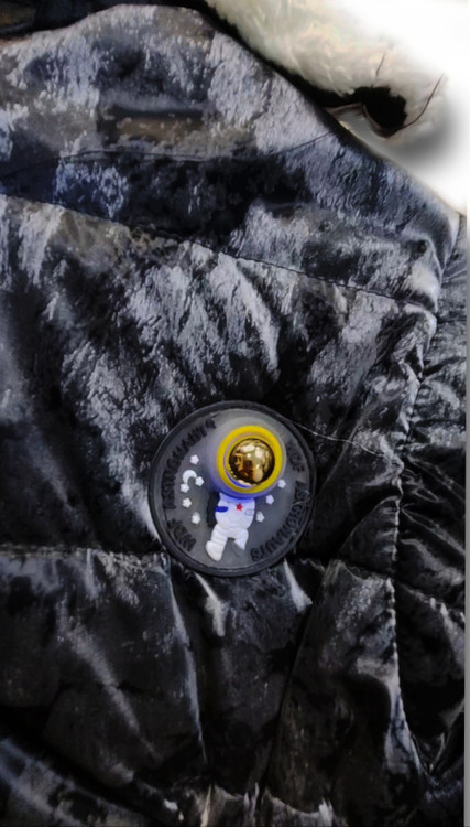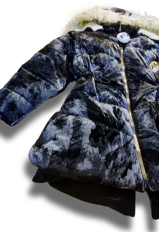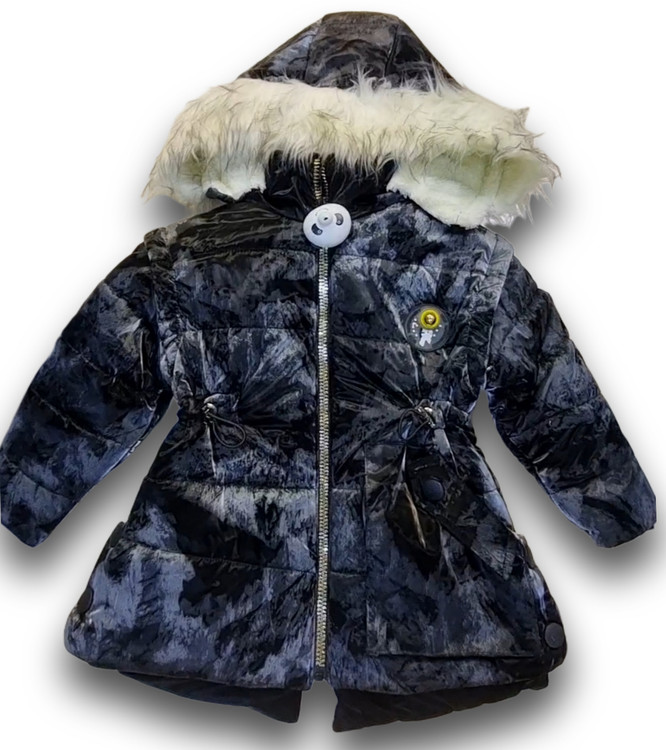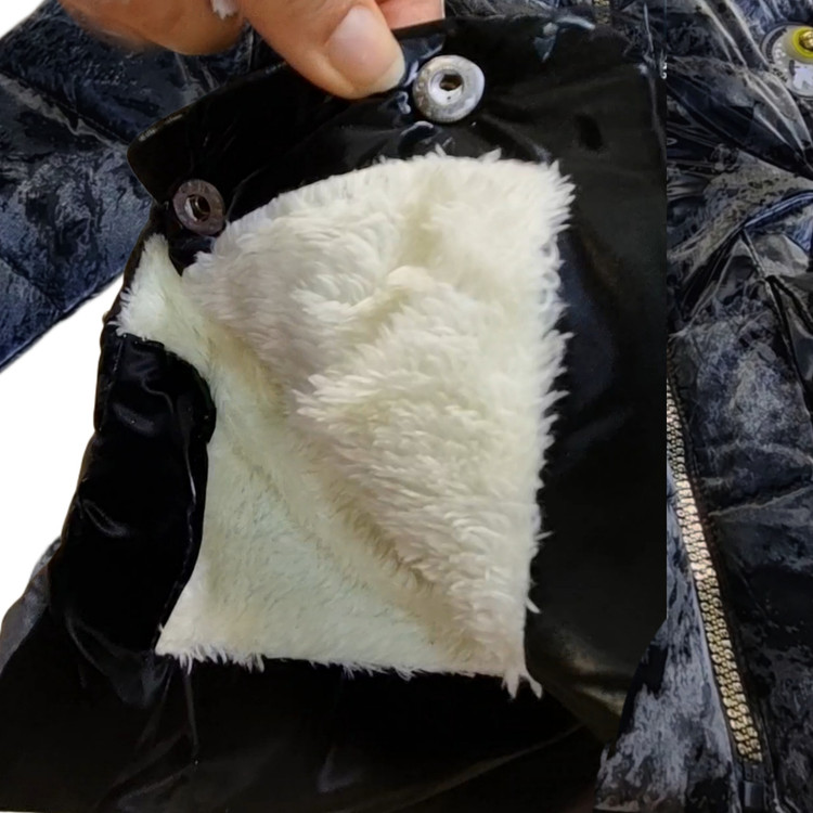 جزئیات: کاپشن ابر وبادی مشکی که از دور مخملی بنظر میرسد کلاه و آستین آن جدا میشود. یک بند کشی در کمر دارد
