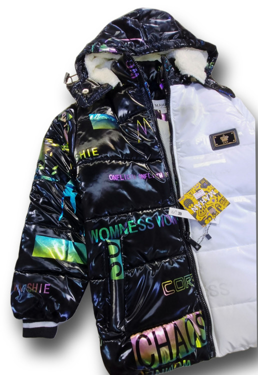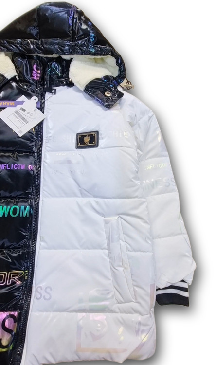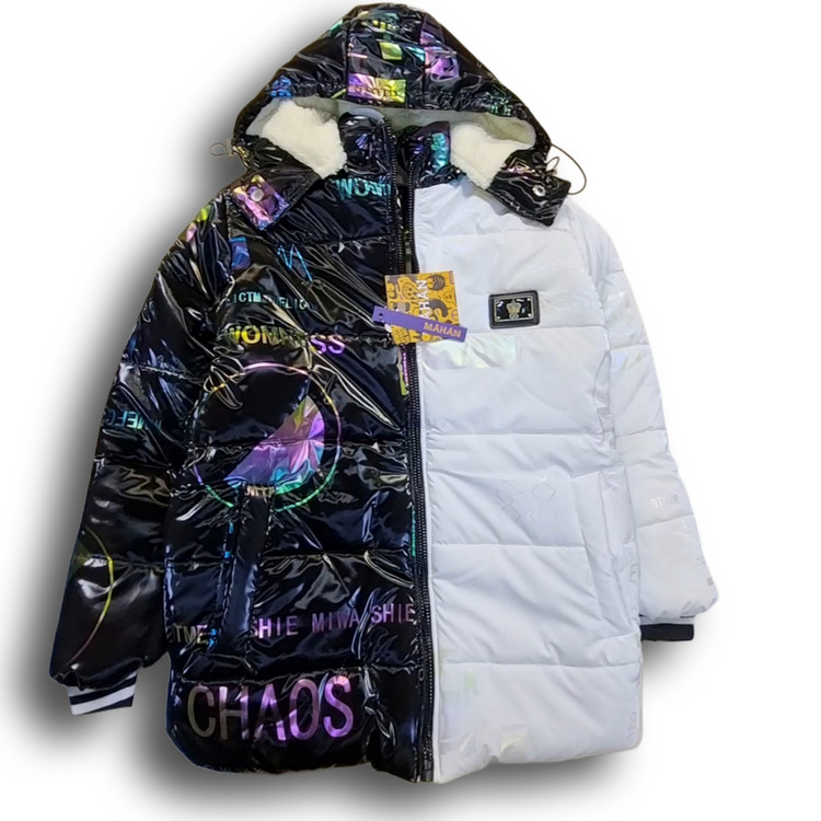 کاپشن سفید و مشکی سیلیکونی طرح دار،داخل خز ، کلاه جدا میشه