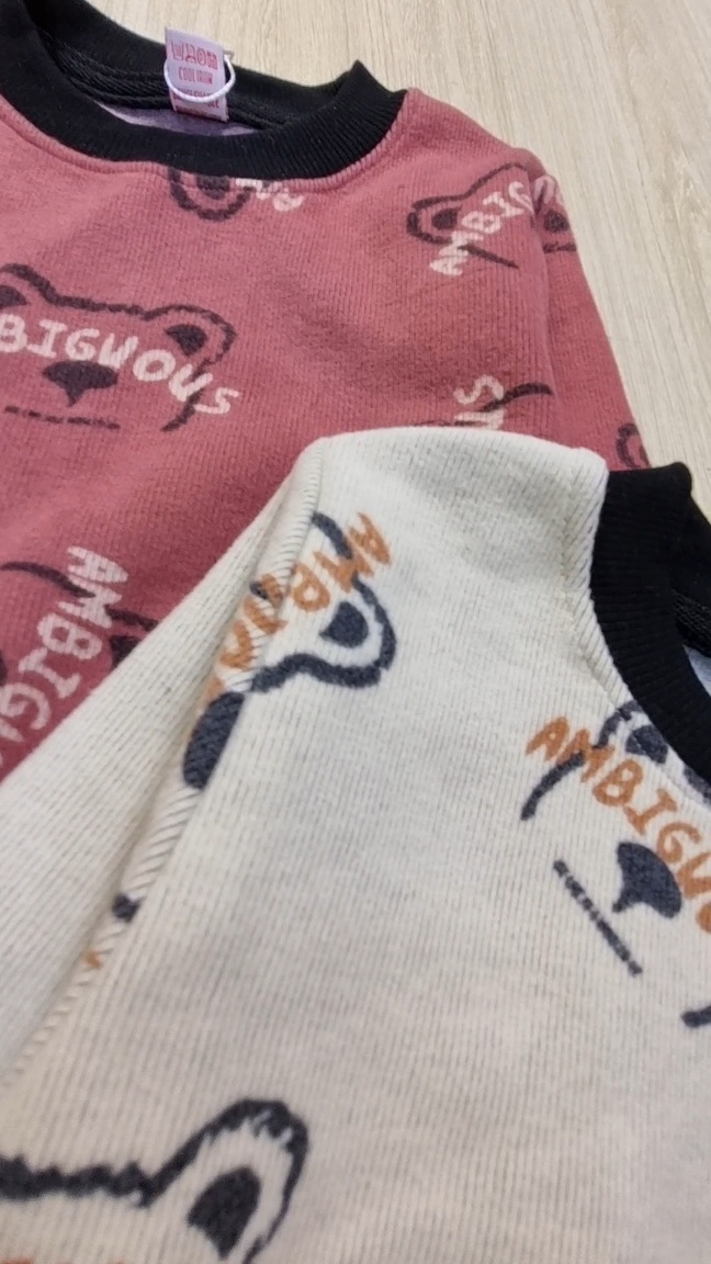 بالاخره موجود شد! این بلوزهای دلبر با طرح خرس و کلمه "AMBIGUOUS" یک انتخاب عالی برای ست کردن خواهر و برادرها هستند.