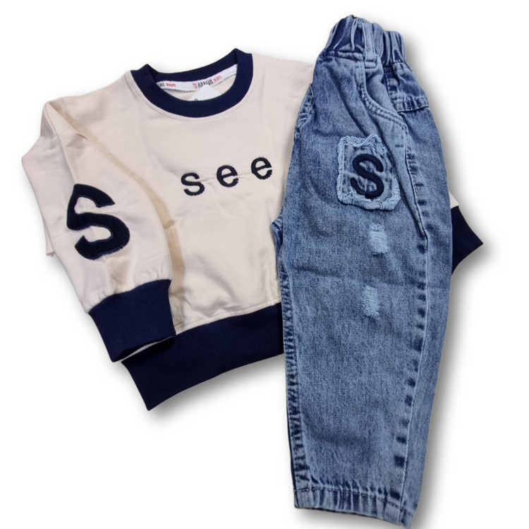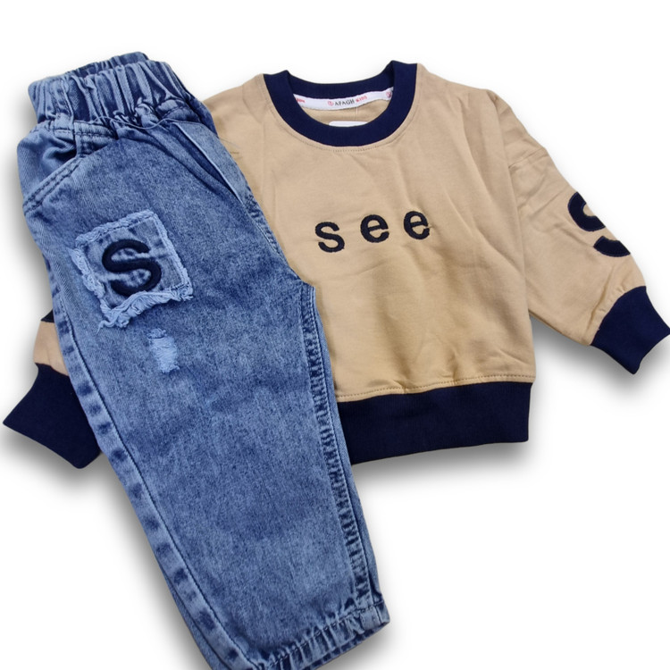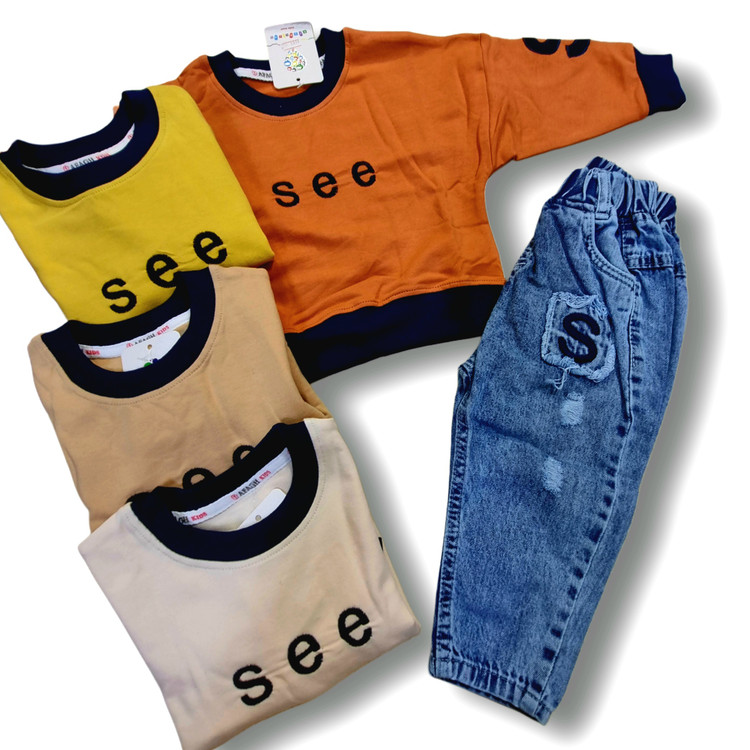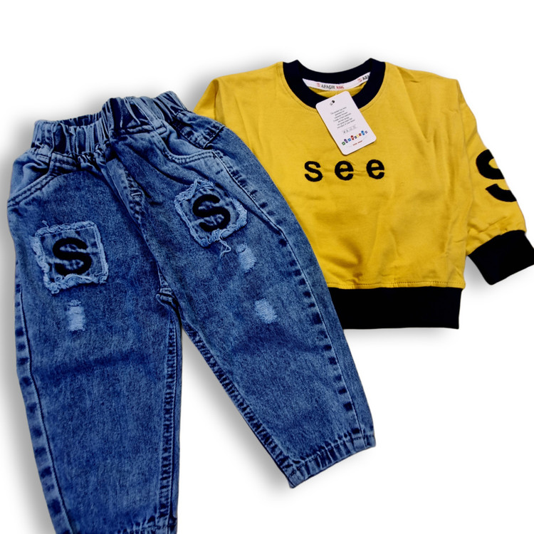 شلوار جین کاربردی: شلوار این ست به تنهایی ارزش بالایی دارد و میتوانید آن را با سایر بلوزها یا کاپشنهای فرزندتان نیز ست کنید.