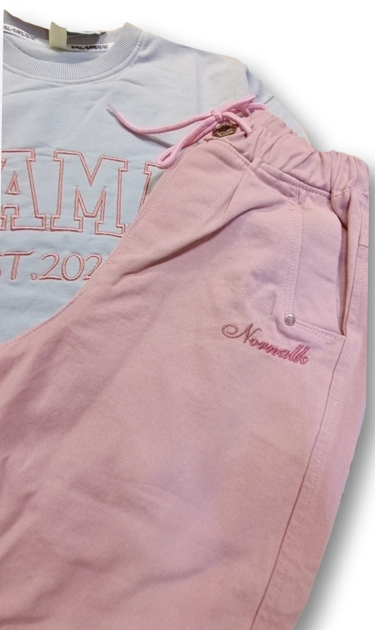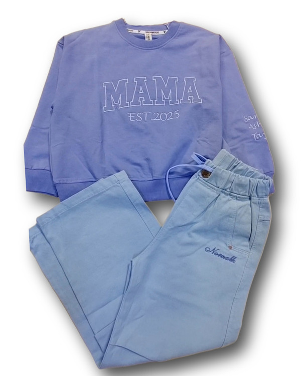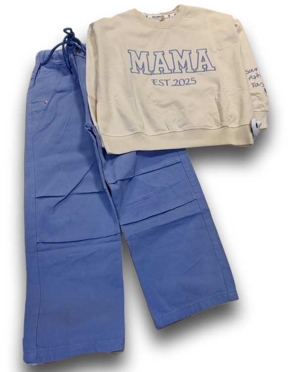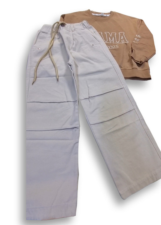 جزئیات: طرح روی بلوز و روس آستین گلدوزی شده شلوار بگ جنس کتان ایستایی بالای داره