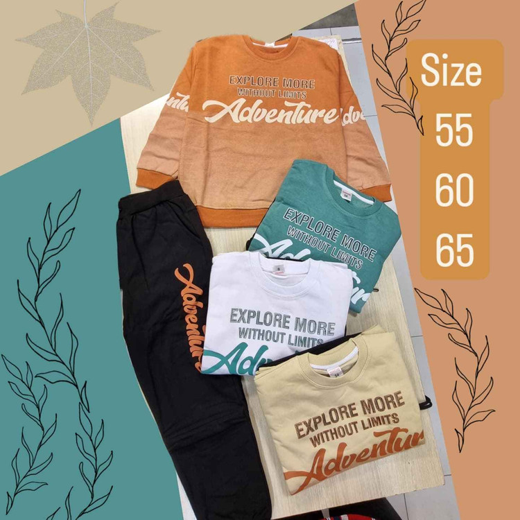 سایز۵۵: قدلباس ۵۹، عرض ۴۵،آستین ۴۴، سرشانه ۱۵، قدشلوار۸۰ ،فاق۲۸