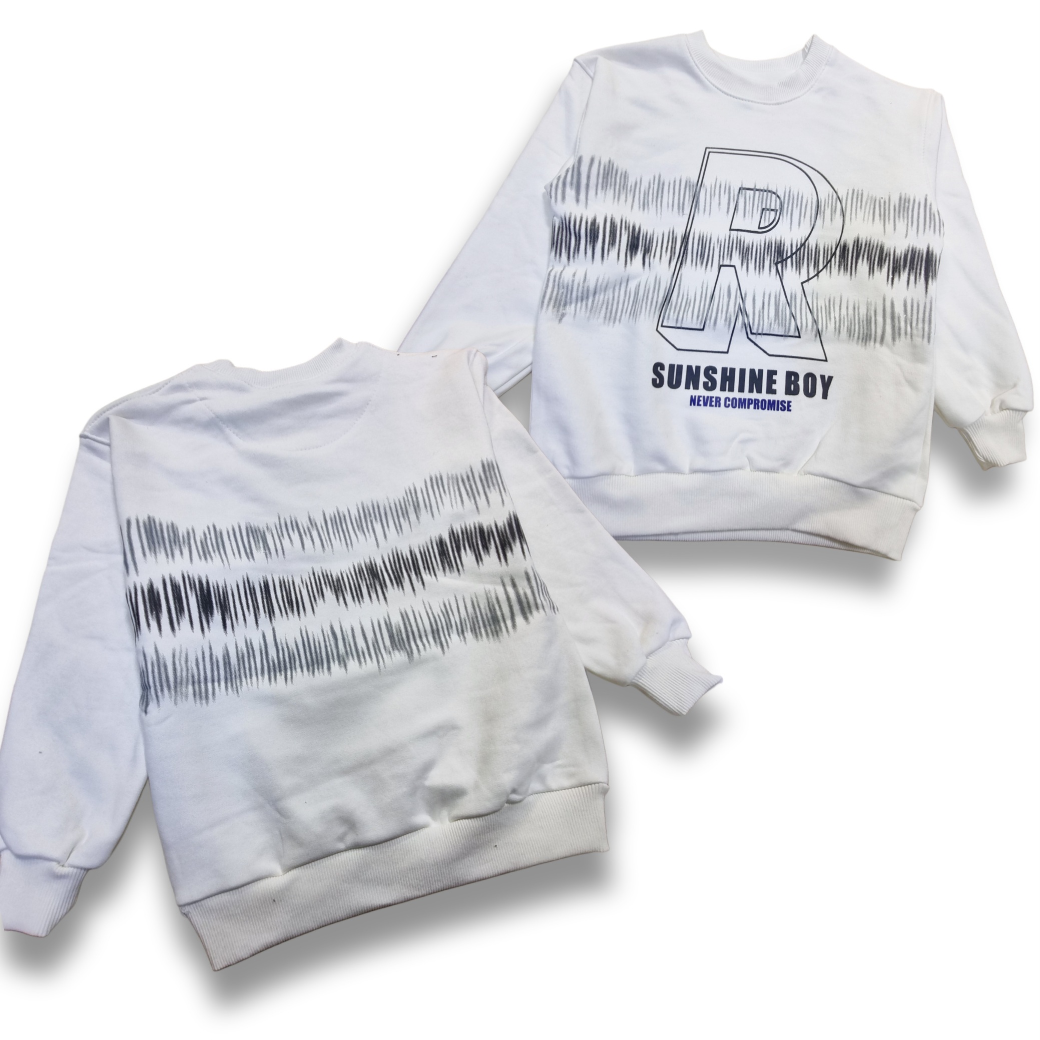طرح R روی لباس و و پشت کار هم طرح داره