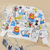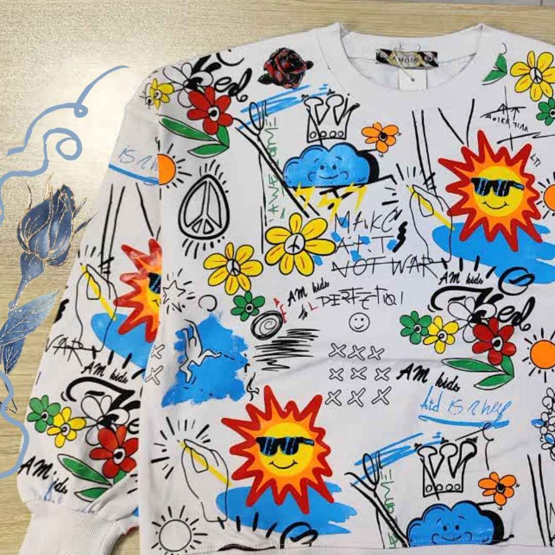 بلوز بچگانه دخترانه مدل کراپ فینگردار طرح خورشیدو ابرو گل جنس نخ و پنبه کتان مناسب ۱۰ تا ۱۴ سال