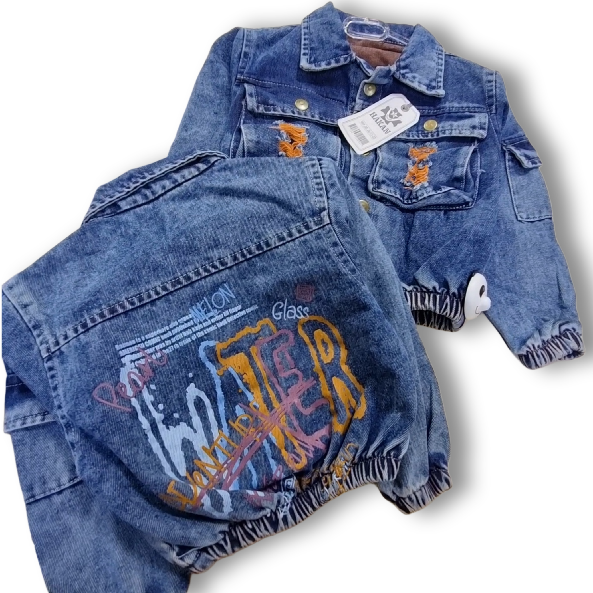 ست کت و شلوار جین با تیشرت نارنجی شیک کار رنگی قشنگ بهاری