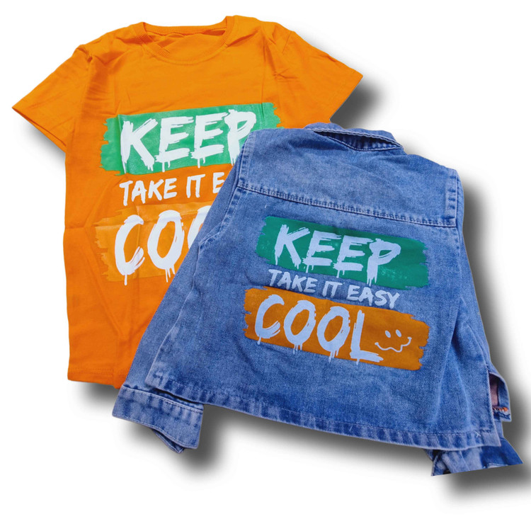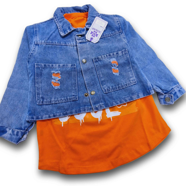 جزئیات: کت و شلوار مام استایل با زاپ نارنجی و یک تیشرت نارنجی همرنگ زاپ ها