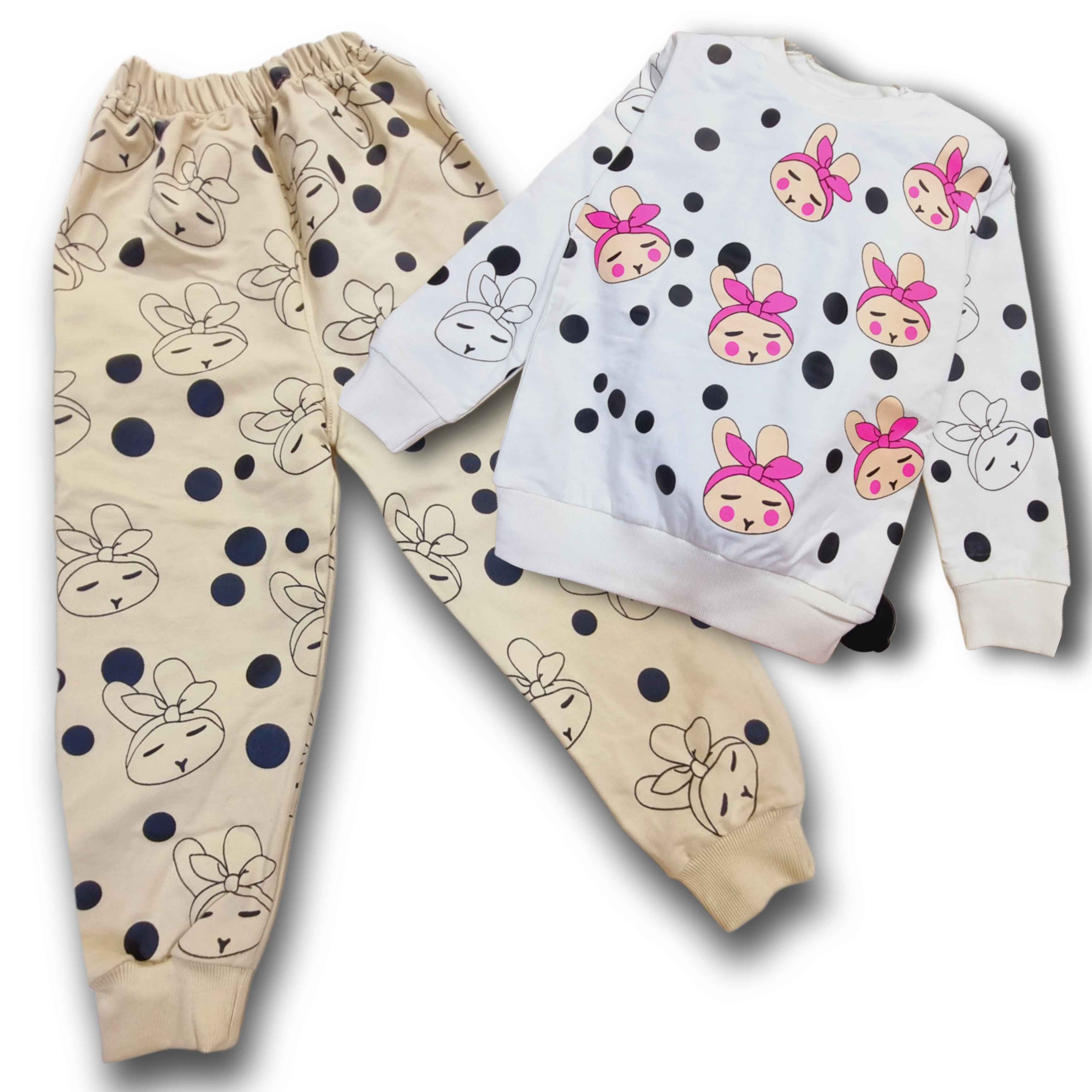 ست بلوز وشلواربچهگانه دخترانه طرح خرگوش جنس نخ وپنبه خونگی