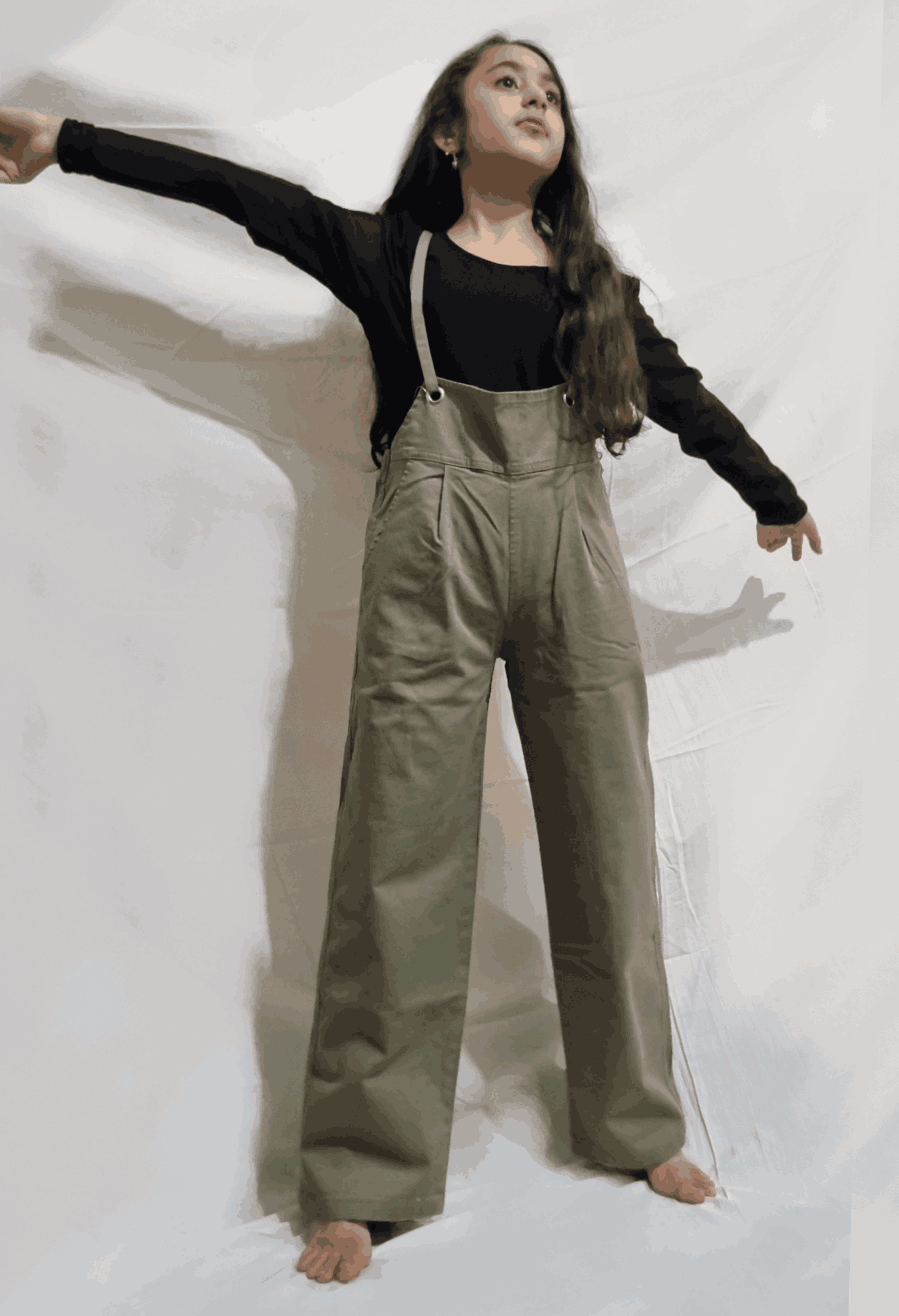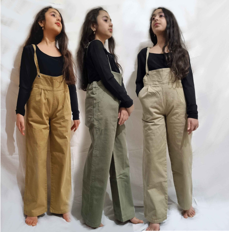 شلوار پیشبندی بچگانه دخترانه مدل نیم بگ جنس کتان