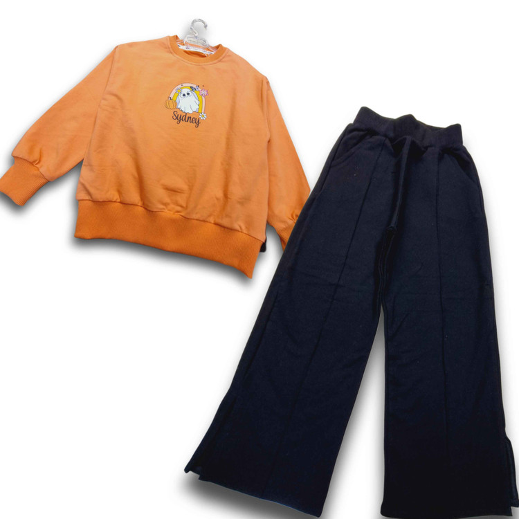 ست بلوزوشلوربیرونی بچه‌گانه دخترانه مدل شلوار بگ بغل چاکدار جنس نخ وپنبه گرم بالا