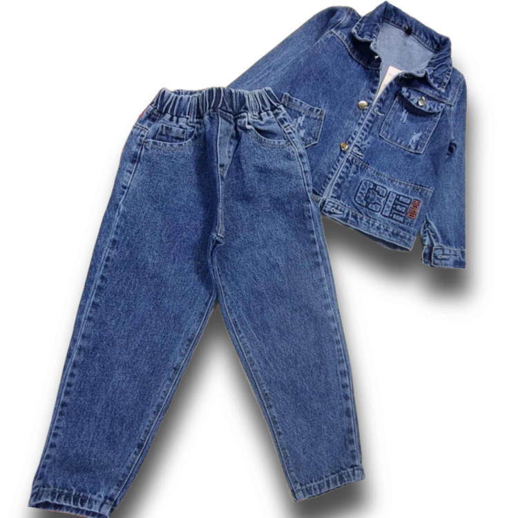 جزئیات: ست کت و شلوار جین فقط رنگ آبی شلوار مام استایل و طرح برجسته قسمت پایین کت